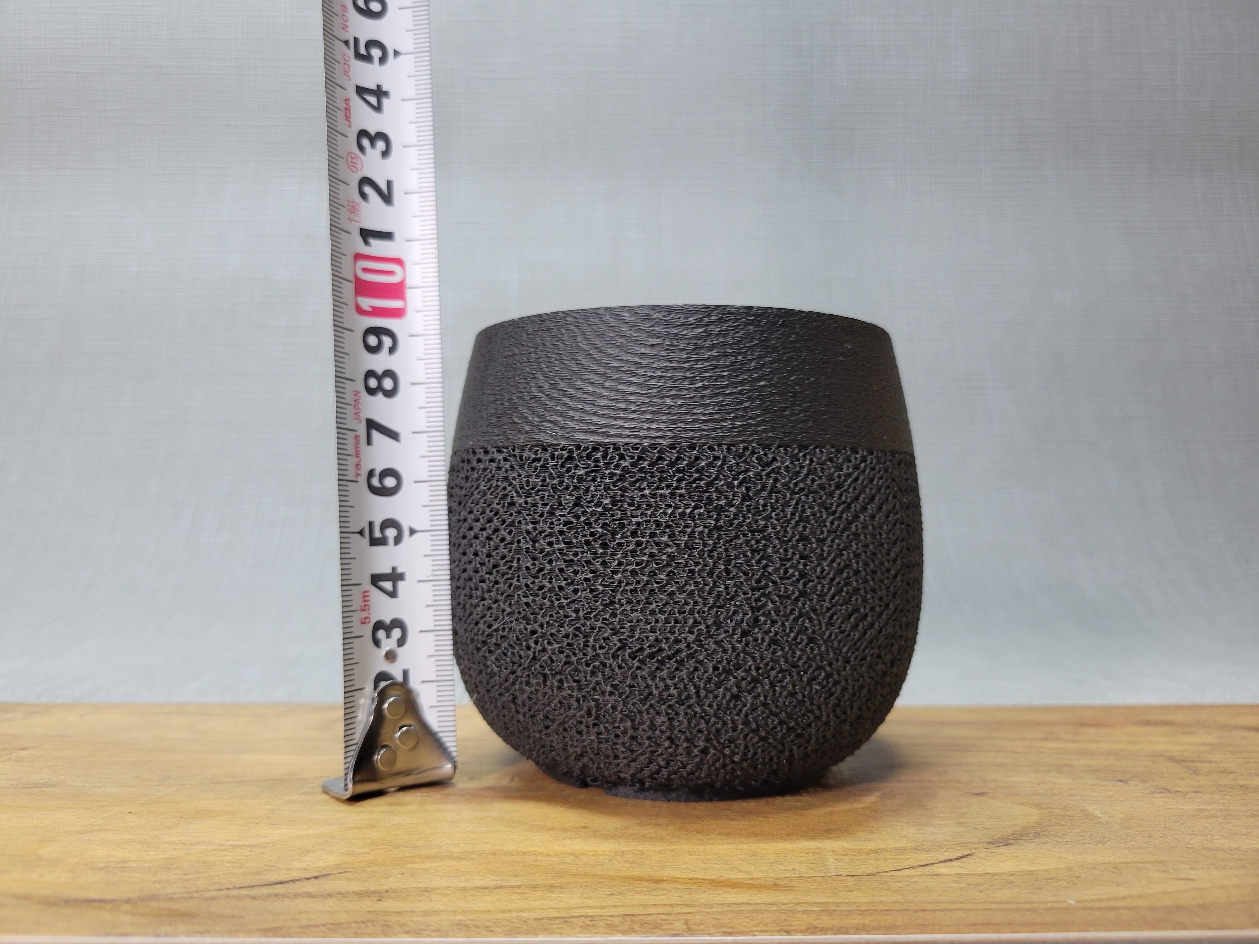 3Dプリンターにより出力できる「三次元メッシュ構造(ジャイロイド構造)」を鉢側面に取り入れることで、鉢の通気性能・排水性能を向上させ、根腐れなどのリスクを軽減しながら植物を健康に育てます。