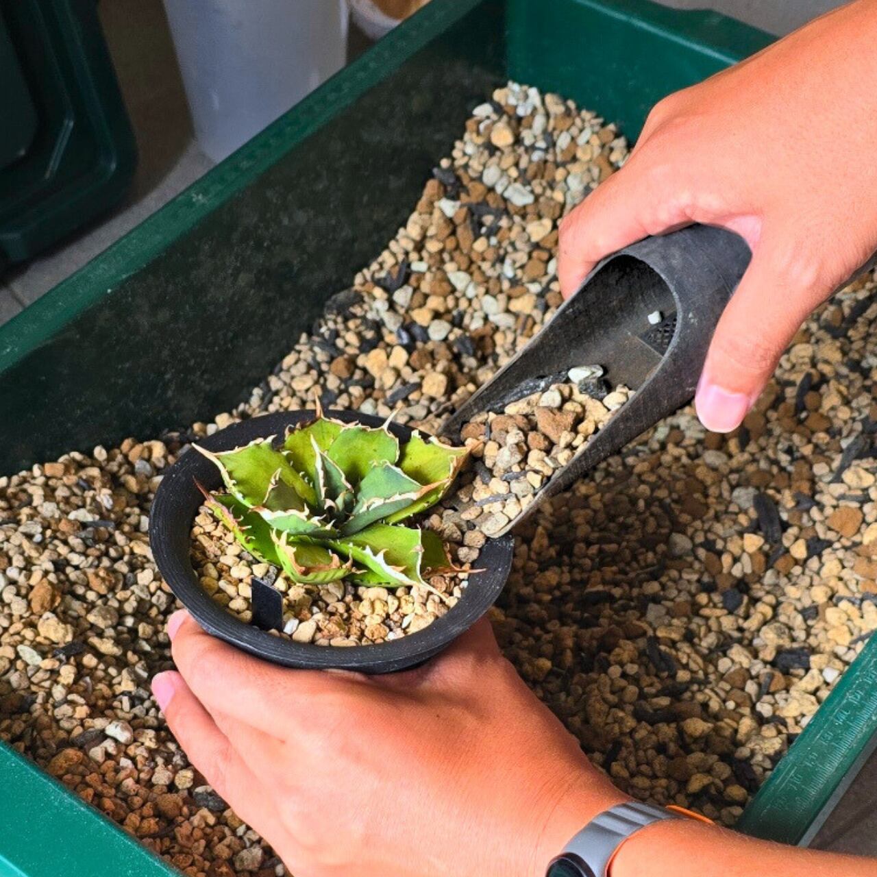 底面と側面に約1.5mmサイズの網目が入っているのですくうだけである程度土の微塵が落とせます。